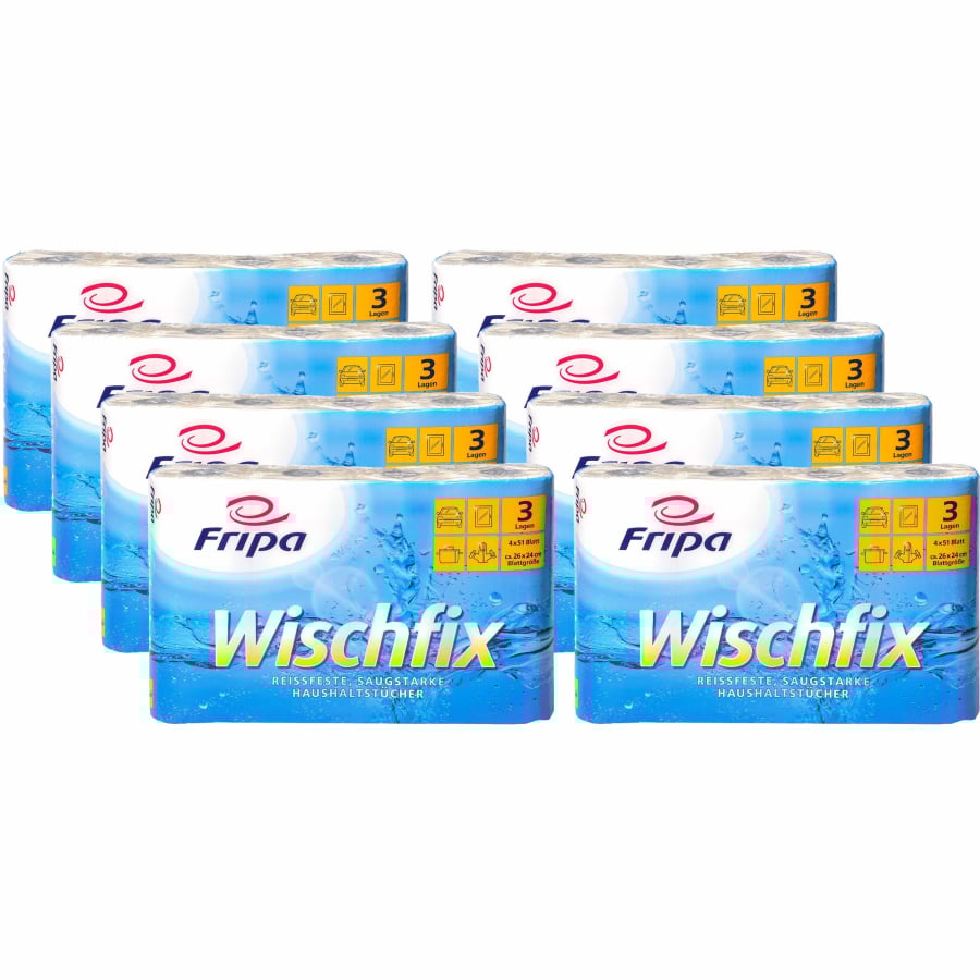 Die Haushaltstücher Fripa Wischfix nehmen ihren Namen beim Wort: Sie kombinieren Saugkraft und Sauggeschwindigkeit so optimal, dass kein Tropfen übrig bleibt.