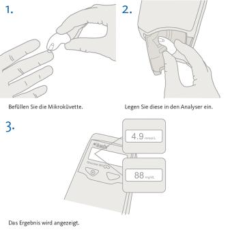 Ergebnisse Innerhalb einer Minute bei normalen Glucosewerten
