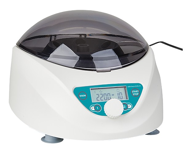 Die SERVOspin Evolve mit Winkelrotor ist vielseitig einsetzbar, der 54° geneigte Winkelrotor ermöglicht hohe Drehzahlen bzw. Schwerefelder und ermöglicht kürzere Zentrifugationszeiten bei gleichen Bedingungen. Der bürstenlose Motor ist schwingend gelagert und verfügt über einen Sensor zur Unwuchtkontrolle. Das garantiert einen sehr ruhigen und geräuscharmen Betrieb. Zur Sicherheit für den Anwender wird die Deckelverriegelung elektronisch überwacht. Die Drehzahl ist von 300 bis max. 5000 U/min und die Laufzeit von 30 Sekunden bis 99 Minuten einstellbar. Zwei anpassbare Programmtasten sparen Zeit und erleichtern die Bedienung. Während der Zentrifugation werden die Drehzahl und die Restlaufzeit im Display angezeigt. Durch eine einfache Tastenkombination kann die Anzeige auch den RCF-Wert (Zentrifugalkraft) anzeigen.